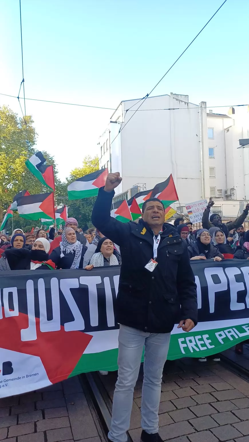 وشارك في التظاهرة رئيس الجالية الفلسطينية في مدينة بريمن السيد سامر بلال أصلان والسيد ديتليف جريش رئيس الجمعية الألمانية الفلسطينية وعضو البرلمان الألماني السابق عن الحزب الاشتراكي الديمقراطي الذي عبر عن رفضه للصمت الدولي تجاه ما وصفه بـ"الجرائم ضد الإنسانية في غزة".