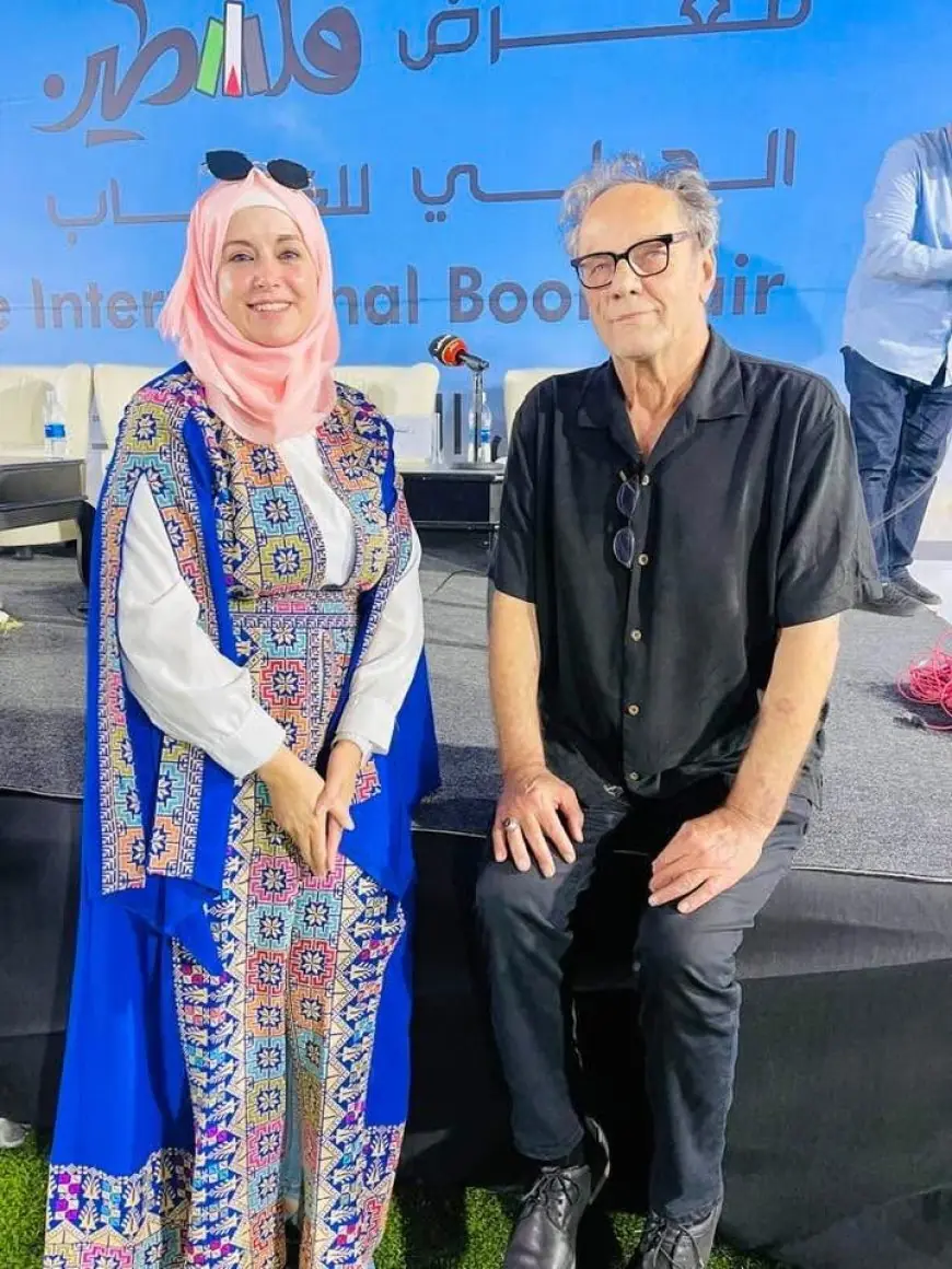 وفي إحدى اللحظات الإنسانية التي تزداد وضوحاً مع الغياب، أستعيد لقائي به على هامش معرض الكتاب في رام الله عام 2023. وبعد ندوة كان فيها متحدثاً أساسياً وبعنوان :( المشهد الفلسطيني وإثراؤه درامياً وسينمائياً ) لم يكن اللقاء طويلًا، لكنه كان مكثّف الدلالة.