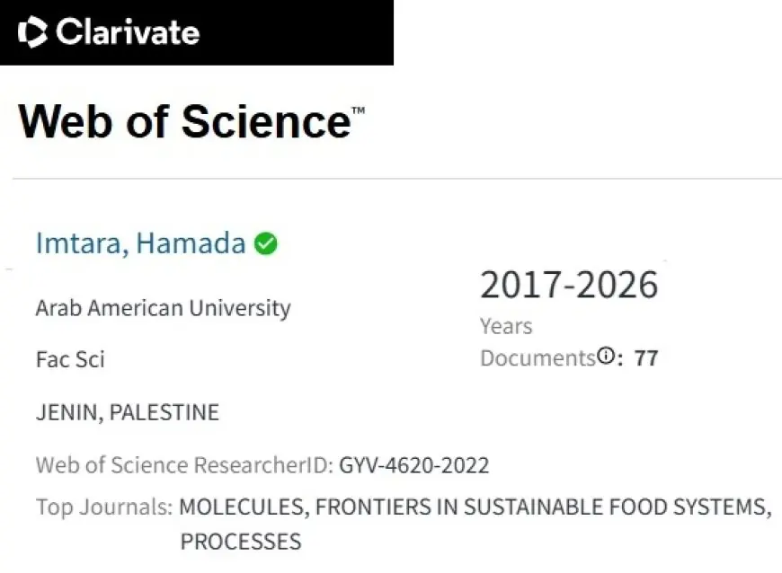 من جهتها أكدت الدكتورة صبا شنك عميد البحث العلمي في الجامعة العربية الأمريكية أن هذا الإنجاز يأتي في سياق البيئة الأكاديمية الداعمة التي توفّرها الجامعة لتنمية البحث العلمي وتشجيع النشر الدولي، ويجسّد رؤية الجامعة في تمكين الباحثين وبناء مسارات بحثية فاعلة منذ مراحلها الأولى.