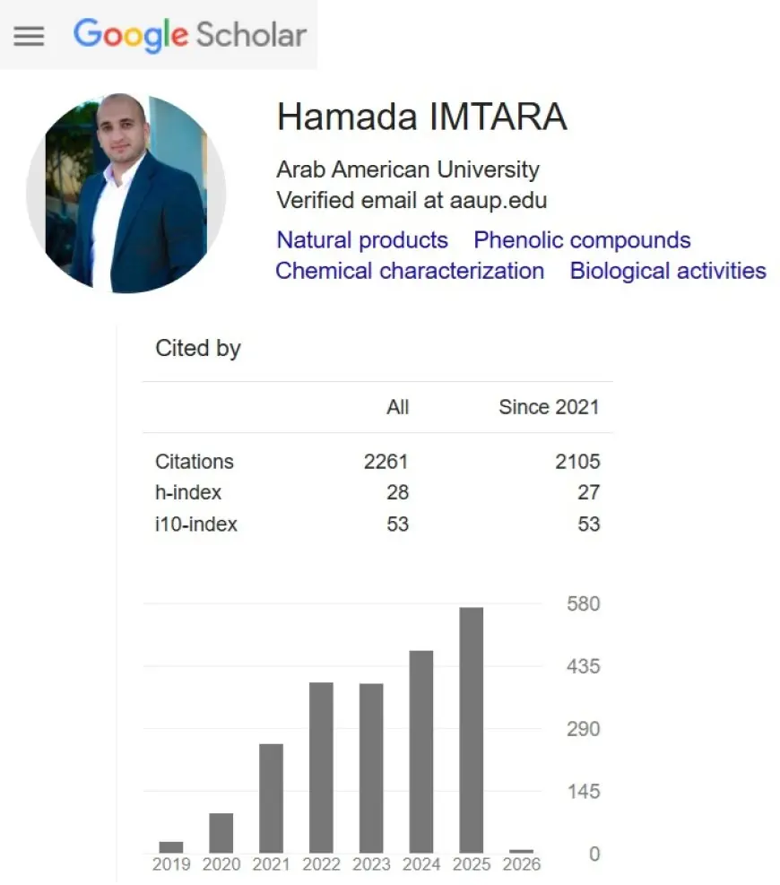 أكاديمي في الجامعة العربية الأمريكية يحقق إنجازا بحثيا في مجالات العلوم الحيوية والمنتجات الطبيعية على المستوى الدولي