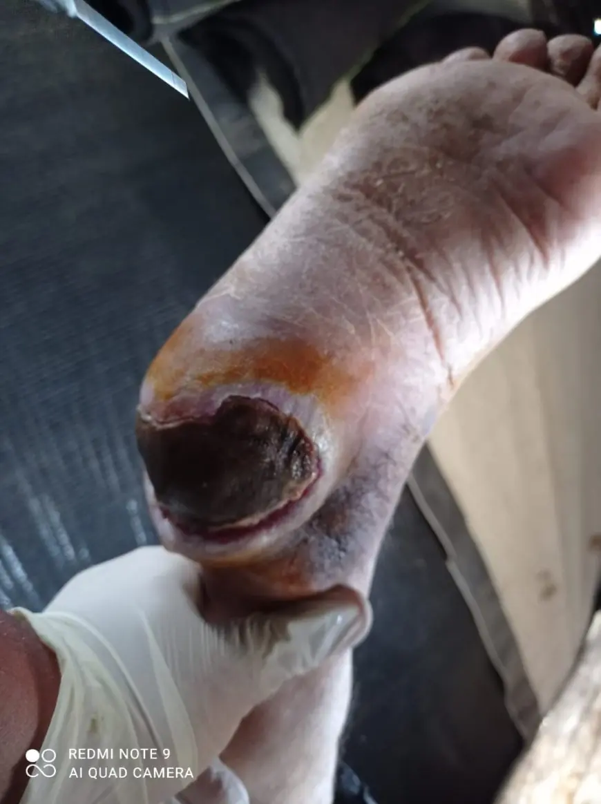 المرحلة الخامسة: البتر الجزئي أو الكلي للقدم، مصحوب بتداعيات نفسية واجتماعية واقتصادية.
